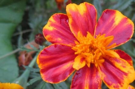 孔雀草的花语是活泼激情,它的花色火红鲜艳,仿佛具有一种魔力,让人情不自禁的,跟随它那活泼热情的性格一起舞动,这是一种年轻向上的姿态,让人们在生活中,面对困难时依然乐观对待。