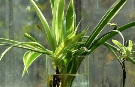 然后将长有根系的吊兰小植株,放入花瓶中即可。只要水分充足,这些气根就会长成真正的根系,等到根系生长成熟,就能够正常的进行养护了。刚生根的时候不要晒太阳,平时将其放在室内阳光散射的地方即可。