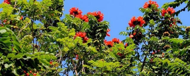 在养殖火焰树的时候,注意及时剪去徒长的枝条,在火焰树枝条发新梢时,要剪去该枝条1到2节的部分,这样不仅可以防止火焰树徒长,还能让树形更美观。在火焰树结果后要及时摘掉果实。