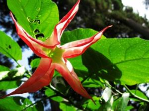 曼陀罗花又叫洋金花、大喇叭花、山茄子等,原产印度,花期5~9月,果期6~10月,喜温暖、向阳及排水良好的砂质壤土。多野生在田间、沟旁、道边、河岸、山坡等地方,主要危害棉花、豆类、薯类、蔬菜等。我国常见种有曼陀罗、毛曼陀罗、白花曼陀罗三种,花均为白色或微带淡黄绿色,单瓣。曼陀罗花(洋..